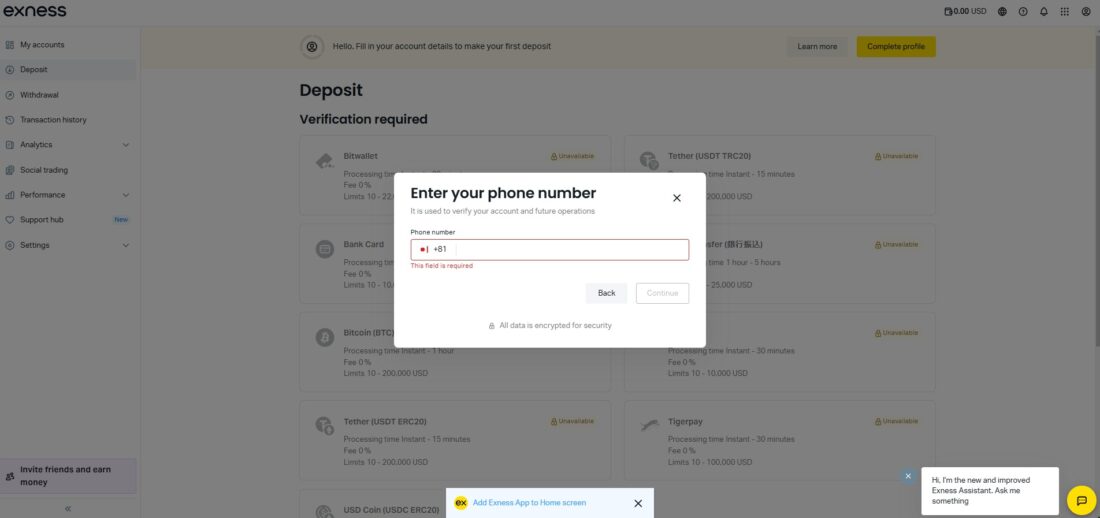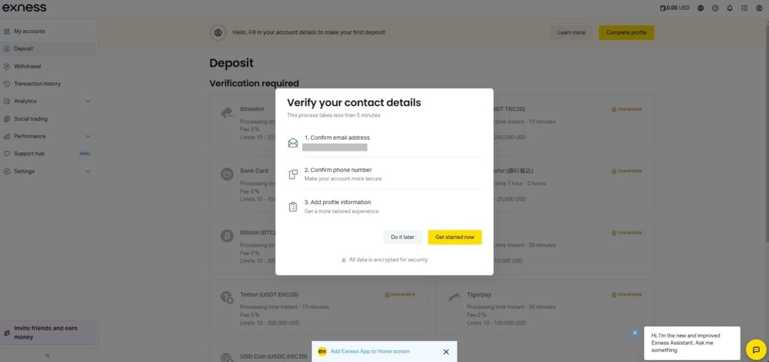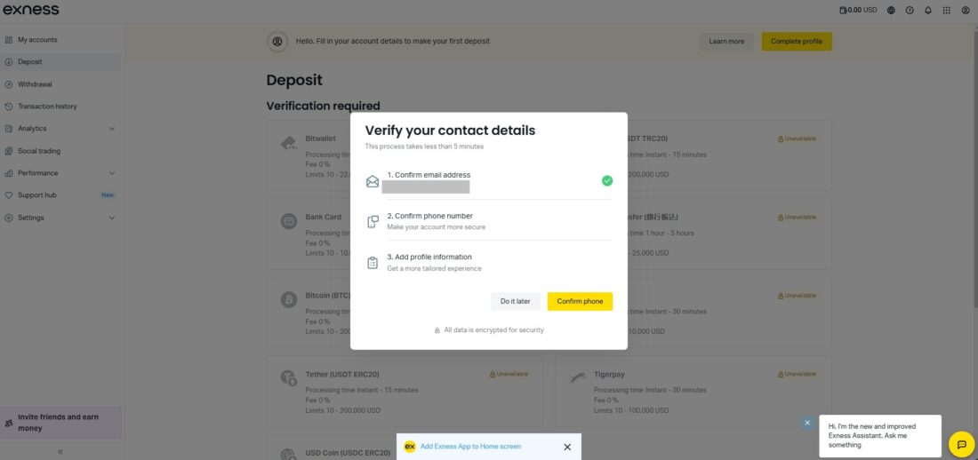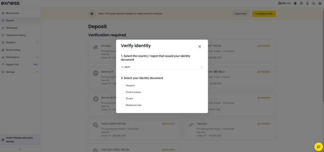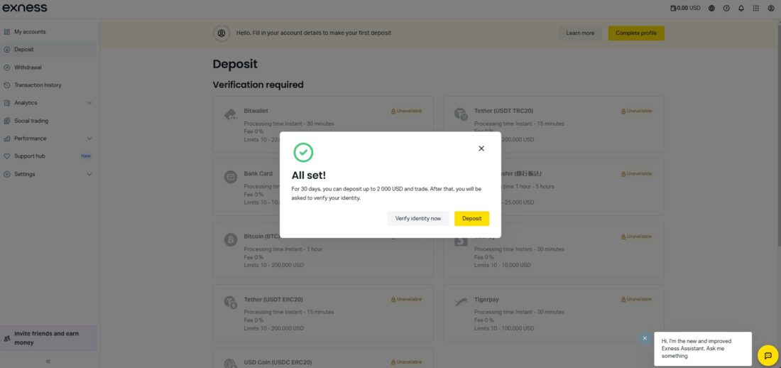 これで、Exnessの口座開設プロセスは完了です。