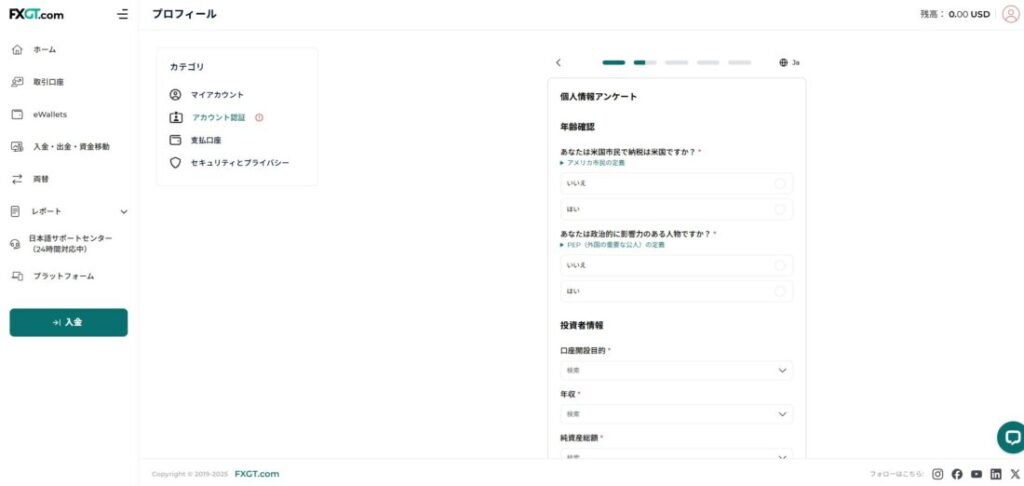 FXGTでは適合性の原則に基づき、投資家情報の申告が必要です。
