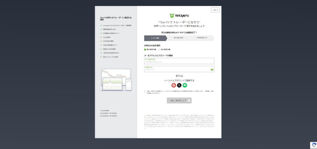 - TitanFXの公式サイトから口座開設フォームにアクセス
