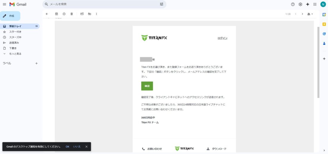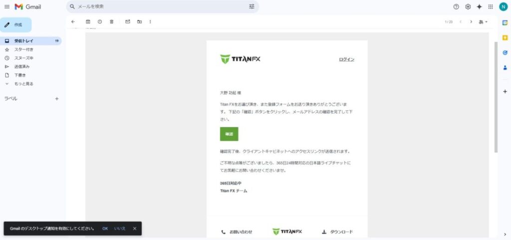 - メール設定の確認:TitanFXからのメールが受信できるよう設定を確認