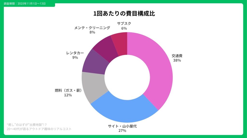 - キャンプ場・山小屋代:27%(平均¥4,200/回)