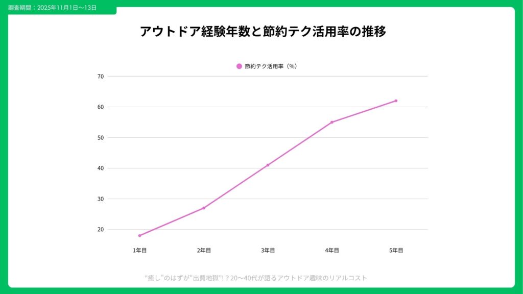 増え続ける出費に対し、利用者が実践している“節約テク”も調査しました。 レンタル・中古活用、オフシーズン割、会員制割引など、多様な工夫が見られます。